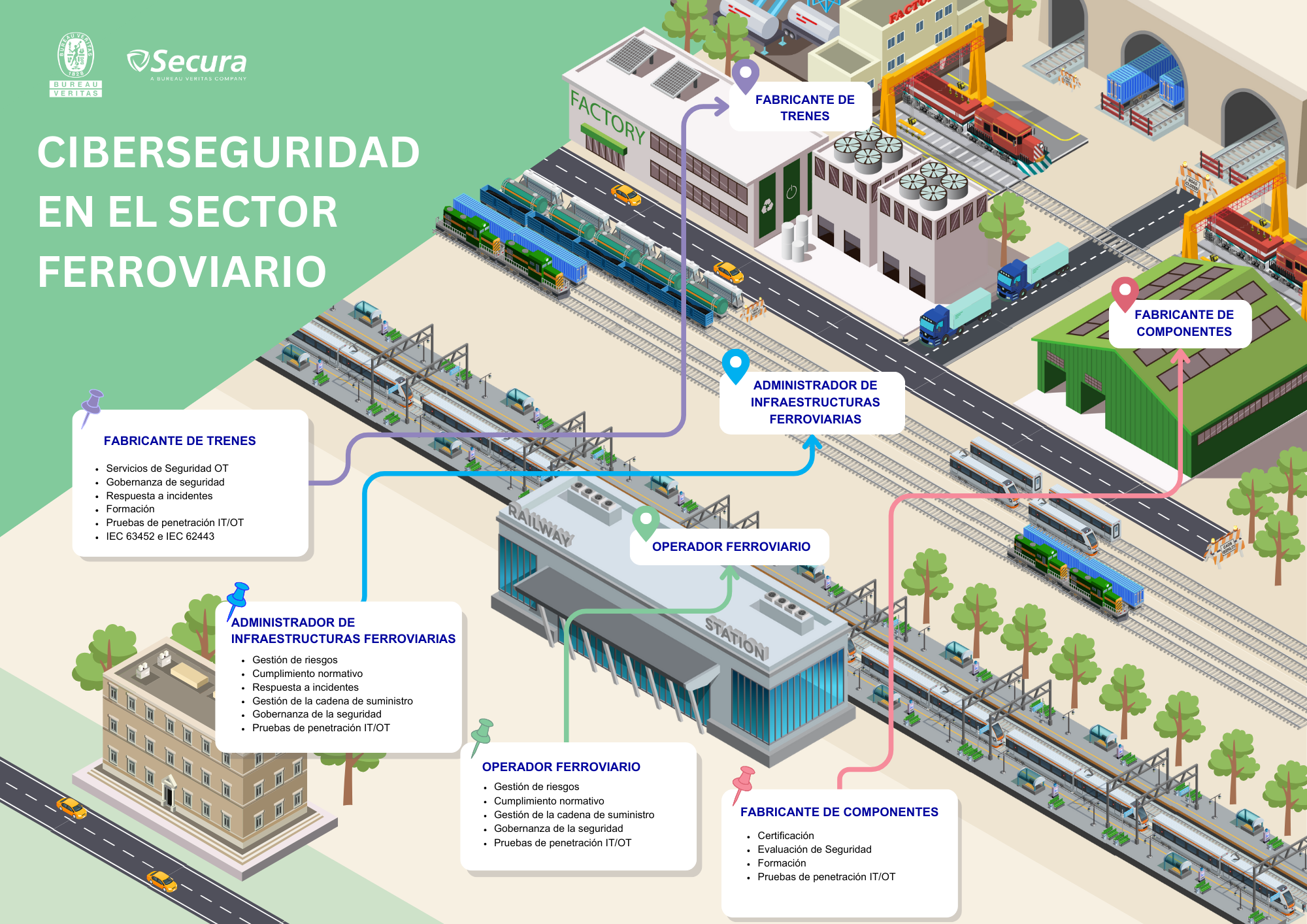 La transformación digital continúa siendo un elemento clave para las operaciones ferroviarias, lo que implica proteger estas infraestructuras críticas frente al aumento de riesgos cibernéticos. Bureau Veritas | Secura puede ayudarle para protegerse de las amenazas actuales y cumplir con las regulaciones del sector.